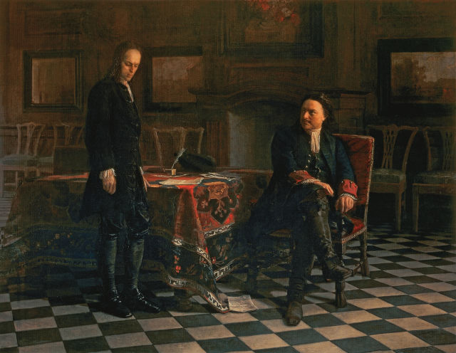 Петр I допрашивает царевича Алексея Петровича в Петергофе