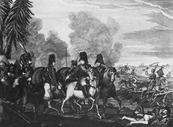 Между тем, неприятель кинулся с целою дивизиею кирасир и несколькими полками легкой конницы на пехоту 4-го корпуса, но сия была опрокинута. Вместе с тем другая кирасирская