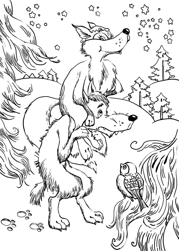 – И то правда, – говорит волк, – где тебе, кумушка, уж идти; садись на меня, я тебя довезу.
