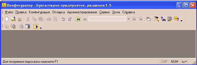 панели инструментов. Редактируемая конфигурация будет помещена в информационной базе.