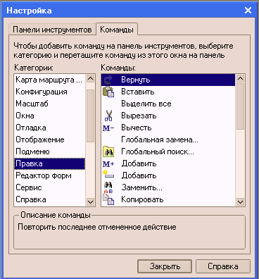 Все кнопки, которые могут быть размещены на панелях инструментов, для удобства объединены в несколько категорий. Список категорий размещается в списке «Категории». Если выбрать в этом списке имя какой-либо категории, в списке «Команды» выдается набор команд, входящих в эту категорию. Этот набор не может быть изменен.