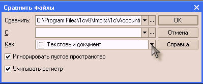В полях «Сравнить» и «С» необходимо указать имена сравниваемых файлов. Имена файлов можно ввести вручную, выбрать из выпадающего списка или нажатием кнопки вызвать стандартный диалог открытия файл и выбрать файл в этом диалоге.