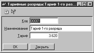 Справочник "Тарифные разряды" предназначен для ведения тарифной сетки, принятой на предприятии и отличной от ЕСН.