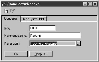 На вкладке Основная задается наименование должности и категория работника на этой должности из списка: