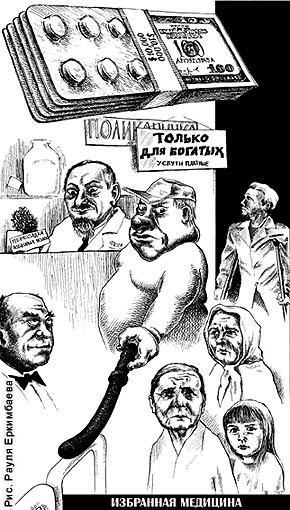 Здесь хочу рассказать, как обстоит дело со здравоохранением народа в США, где я живу уже пятнадцать лет и напрямую столкнулся с платной медициной. Здравоохранение в цитадели капитализма — это бизнес, законам которого четко следуют все работники системы. Это не значит, что все должны платить долларами, хотя это весьма предпочтительно. Перед таким клиентом медики, образно говоря, открывают приемные двери и затрачивают на него больше времени. Почему? Действует магическое слово “наличные”. Не то что там страховки, медикер, медикейд — формы оплаты медицинских услуг компаниями и государством. За этими формами тоже стоят реальные деньги. Но, во-первых, есть ограничения в размерах оплаты конкретных услуг. Так, за первичный прием врач получает по страховке 60–80 долларов, по медикеру (бесплатная помощь государства лицам неработоспосбного возраста и инвалидам) — 50–60 и медикейду (бесплатная помощь государства безработным и матерям с детьми до трех лет) — 15–20 долларов. Наличными же пациент платит 100 долларов. И это только начальный, так сказать