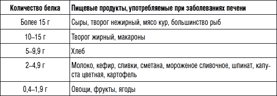 При печеночной недостаточности количество белка, поступающего с пищей, должно быть уменьшено до 40 г. Исключается полностью мясо, животные жиры и белки. В рационе остается молоко, творог, кисломолочные продукты. Разрешено употреблять в пищу до 300 г углеводов, до 30 г жиров. При употреблении молока, меда, варенья следует учесть, что они могут действовать как слабительное. Среди разрешенных продуктов: те, которые обладают легкоусвояемыми углеводами, калием и витаминами: овощные соки, отвары сухофруктов, шиповника. Разрешены протертые овощные супы, каши, кисели. При печеночной недостаточности печень не может преобразовывать аммиак, превращая его в мочевину, поэтому принимают лактозу – она не дает образовываться аммиаку. Еду принимают каждые два часа. Иногда проводят бессолевую диету.