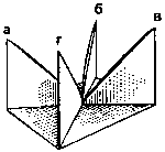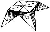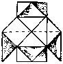 На обеих сторонах получившейся фигуры нужно отогнуть наружу треугольнички, заштрихованные на рисунке. А на этом рисунке все четыре треугольничка уже отогнуты.