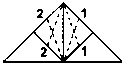 Теперь нужно сжать треугольнички, чтобы совпали точки 1 и 1 и точки 2 и 2. Это нелегко, тут придется повозиться.