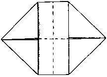 Сложи теперь бумагу по диагоналям, как на рисунке; при этом поперечные сгибы сойдутся в середине фигуры.