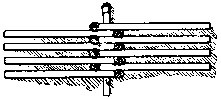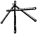 Начерти на доске линии, как на рисунке. Колышки прыгают по линиям. Колышком можно ходить только тогда, когда он может перескочить через другой колышек на пустое место. А тот, бедняга, убит, как в шашках. Задача в том, чтобы убить все колышки; а последний, оставшийся в живых, должен очутиться в нижнем среднем гнезде.