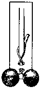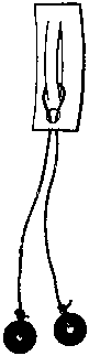Дужка с колечками на концах; в эти колечки пропущен стержень, концы которого тоже загнуты кольцами, чтобы он не выпадал и не вынимался из дужки. А на стержне внутри дужки висит затейливая фигура. Как же снять ее, не разгибая колечек, не разгибая этой фигуры?