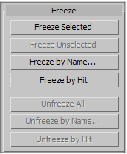 4. Раскройте пятый раздел командной панели — Display (Отображение). Здесь в свитке Freeze (Заморозка) собран полный набор опций заморозки (рис. 1.94). Помимо уже перечисленных, это: Freeze Unselected (Заморозить невыделенное) , Freeze by Name (Заморозить по имени) , Freeze by Hit (Заморозить щелчком) , Unfreeze by Name (Разморозить по имени) , Unfreeze by Hit (Разморозить щелч-ком). Эти опции действуют так же, как аналогичные опции скрытия.