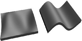 Увеличивая значения параметров Amplitude 1 и Amplitude 2 , вы усиливаете действие эффекта. Если значения данных параметров совершенно одинаковы, то волна будет ровной. Если же их значения разнятся, то волны будут выгну-тыми по длине. На рис. 2.60 показаны разные варианты амплитуд волн.