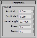 2. Примените в отношении данного объекта модификатор Wave (Волна). В облас-ти параметров появятся новые параметры, позволяющие настроить эффект дей-ствия модификатора (рис. 2.59).