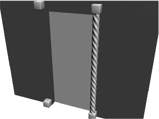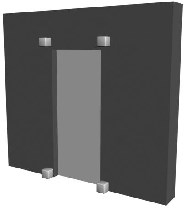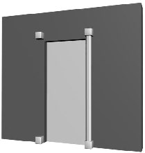 4. Создайте еще три копии данного объекта (например, при помощи клавиши <Shift> и передвижения оригинала). Значения позиций копий задайте следую-щие: первая копия — X = 97, Y = – 6, Z = 0; вторая копия — X = 203, Y = – 6, Z = 214, третья — X = 97, Y = – 6, Z = 214. В результате по углам дверного про-ема расставлены опорные элементы будущей конструкции (рис. 2.63).