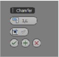 Используя средство Settings (Настройки) данного инструмента, можно точно зада-вать значение скашивания. При нажатии этой кнопки (расположенной справа от самого инструмента Chamfer (Фаска)) появляется блок параметров Chamfer (Фас-ка) — рис. 2.100.