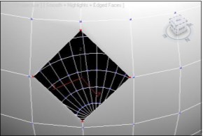 Выделите на поверхности сферы две вершины, которые расположены на двух про-тивоположных углах одного полигона, примерно так, как показано на рис. 2.102. Теперь, щелкнув по кнопке Connect (Соединить), вы автоматически создаете сег-мент, соединяющий эти вершины (рис. 2.103).