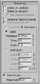 В свитке Rendering (Визуализация) содержатся параметры, отвечающие за видимость сплайна на визуализации (рис. 3.9). Ранее я говорил, что сплайны не являются визуа-лизируемыми объектами и на кадре визуализации не отобра-жаются. В данном свитке вы можете изменить это правило и настроить внешний вид сплайнов при визуализации. Enable In Renderer (Видимый на визуализации) — первая опция данного свитка, которая как раз позволяет сделать сплайн видимым при визуализации. Установите здесь фла-жок и запустите визуализацию сцены (<Shift>+<Q>). В кадре отобразится линия сплайна.