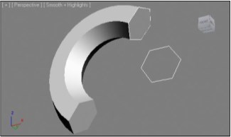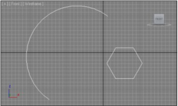 1. В окне проекций Front (Вид спереди) создайте два сплайна: Arc (Дуга) и NGon (Многоугольник) — рис. 3.75. Дуга — это сплайн - путь, а многоугольник — сплайн - сечение.