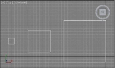 2. В окне проекций Top (Вид сверху) создайте три сплайна Rectangle (Прямо-угольник): маленький, средний и крупный (рис. 3.79).