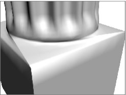 Нижняя часть колонны почти готова. Остался лишь один нюанс. Обратите вни-мание, что между сечениями квадрата и окружности на поверхности модели образовался некий "перекос". Он выражается в наличии нескольких складок (рис. 3.97). Эти складки образовались