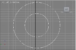 1. Очистите сцену. В окне проекций Left (Вид слева) создайте сплайн Circle (Ок-ружность) произвольного радиуса. Тут же создайте еще один сплайн - окружность с центром в этой же точке, но так, чтобы радиус ее был немного меньше. В ре-зультате должно получиться примерно то, что показано на рис. 3.106.