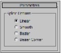 5. Теперь нам понадобятся параметры модификатора CrossSection (Поперечное сечение). Они расположены в свитке Parameters (Параметры) — рис. 3.109. Здесь можно менять тип сглаженности добавляемых линий. Четыре уже знако-мых вам типа сглаживания позволят изменить формы продольных линий.