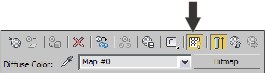 9. Нажав эту кнопку, вы вернулись на уровень редактирования всей текстуры сра-зу, а не отдельного ее канала. Теперь канал Diffuse Color (Диффузный цвет) активен, о чем свидетельствует галочка и название используемой в нем карты.