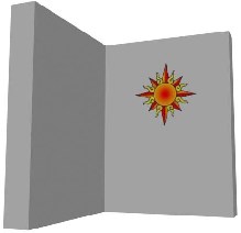 5. Выделите любой пустой слот, раскройте свиток Maps (Карты) и в качестве кар-ты диффузного цвета примените изображение из файла Solnce.jpg в папке Primeri_Scen\Glava_5\ Solnce (точно так же, как и в случае с картиной, рассмот-ренной ранее). В результате на стене будет висеть прямоугольное изображение стилизованного солнца (рис. 5.26).
