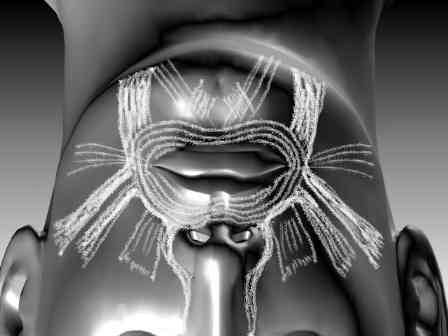 перекрещивается много лицевых мышц, образуя небольшие желваки, а иногда даже приводя к