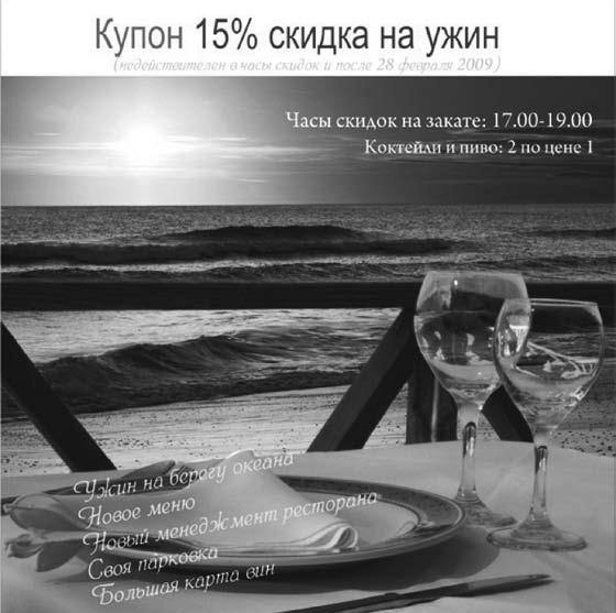 Купон со скидкой 15 % на ужин (рис. 53).