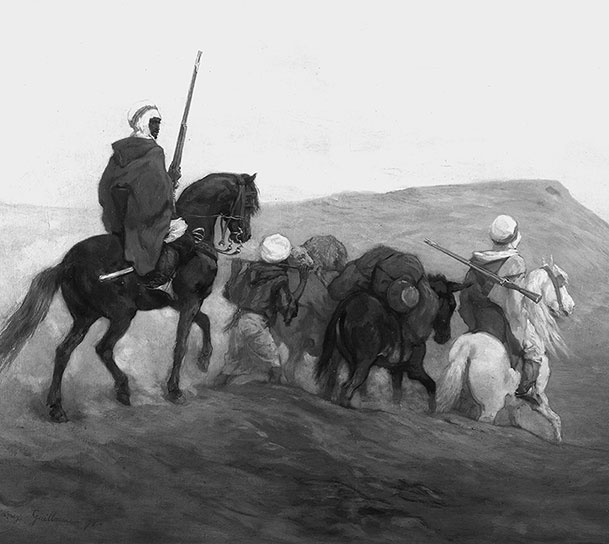 Итальянец Карло Гуармани отправился в Аравию, идя по стопам своего предшественника, финна Георга Валлина. Он вышел в путь 26 января 1864 г. в костюме бедуина, выдавая себя за торговца лошадьми; его сопровождали шейх одного из бедуинских племен и два всадника-араба. У Гуармани были с собой два рекомендательных письма к вождям местных племен, в которых он представлялся как закупщик лошадей, посланный турецким правительством, однако это была слабая защита: если бы путешественника разоблачили, его не спасли бы никакие письма.
