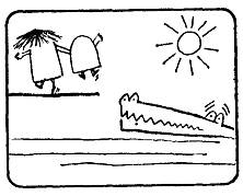 Крокодил (в смущении).Как мне поступить? Если я отдам тебе младенца, то твой ответ будет неверным. Следовательно, я должен съесть малютку. Отличная идея! Я не отдам тебе его!
