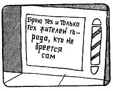Но в объявлении утверждается, что наш брадобрей никогда не бреет тех, кто входит в это множество. Следовательно, наш брадобрей не может брить самого себя.