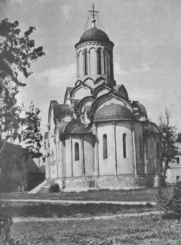 Живопись Рублева в Спасском соборе не сохранилась. Она была сбита со стен еще в XVI веке, а в XVII и XVIII веках собор был расписан заново. В это же время он подвергся и частичной перестройке. В 1775 году с левой стороны его была сделана для богомольцев новая паперть. Горда же вновь написан иконостас, а старый (видимо, времен Рублева) продан в другую церковь за 300 рублей. В пожар 1812 года своды собора обвалились, купол рухнул. В 1848 - 1850 годах архитектором Герасимовым были возведены два новых придела, а над куполом устроен шатровый верх. В 1837 году монастырское начальство пригласило расписать собор живописца Андрея Жукова. Он очистил фрески XVIII века и написал под куполом ангелов.