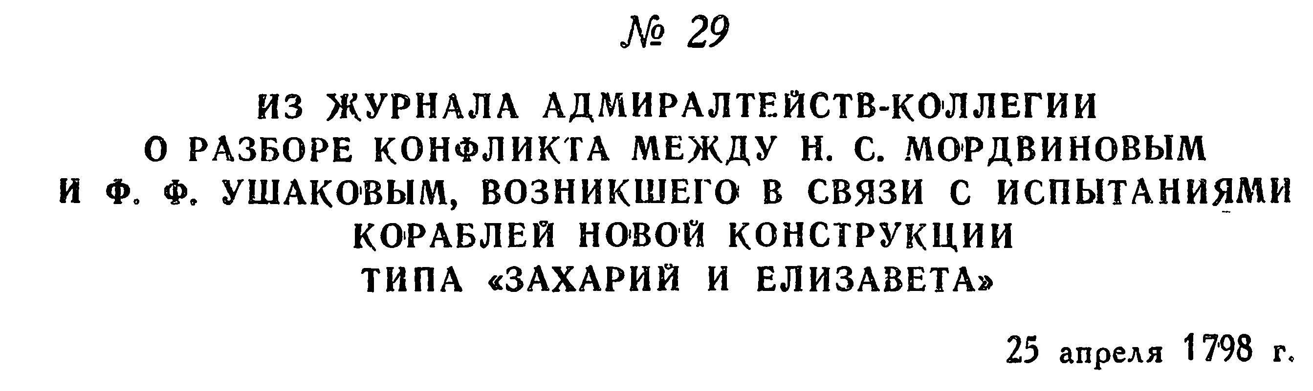 Ушаков опорочивает опыты кораблям «Захарий и Елизавета» и «Св.