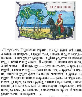 Больше всего удивили в Индийской стране люди: всех оттенков кожи, от почти угольной, до светло-бежевой, ходят они почти нагишом, и всей одежды на них — кусок яркой ткани, обернутый вокруг бедер. «А паропки (мальчики) и девочкы ходят нагы до 7 лет», — записывает Никитин, вспоминая индийских ребятишек.