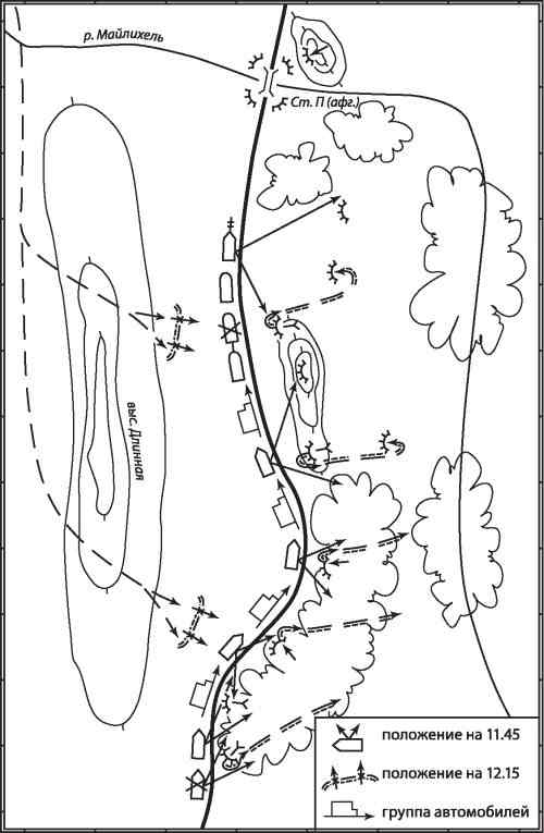 Огневые средства подразделения сопровождения, выполняя приказ командира, открыли ответный огонь. Автомобильная колонна, используя замешательство противника, стала выходить из-под обстрела. Через 30 минут к месту боя прибыли боевые вертолеты, вызванные по радио командиром роты. Нанеся удар с воздуха, они оказали активную поддержку мотострелкам. В этом бою погиб один и были ранены восемь советских военнослужащих.
