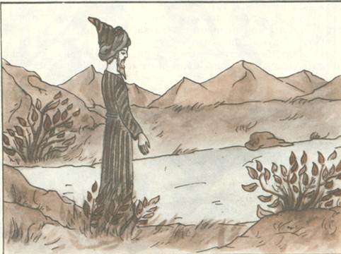 Он шёл весь день, а вечером увидел его какой-то крестьянин и подумал: «Вот путник, на бороде которого осела пыль дальних дорог. Сделаю доброе дело — приглашу его в дом».