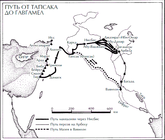 Дарий хорошо понимал, что следующей целью Александра должен быть Вавилон. Этот великий город на нижнем Евфрате был экономическим центром империи и стратегической базой для защиты Суз, Персеполиса и восточных провинций. Персидский царь не сомневался, каким будет путь противника. Александр старается действовать быстро, экономя время, а потому он должен выбрать путь вдоль берега Евфрата, как некогда поступил и Кир во время рокового сражения при Кунаксе.