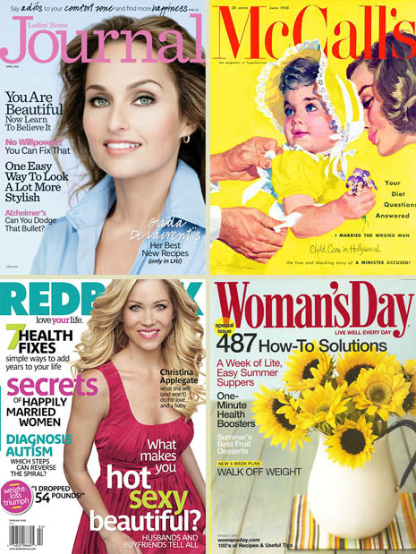 Помимо «Джорнэл» и «Гуд хаускипинг» американскую женщину стали опекать и такие журналы, как «Макколс» («Журнал Маккола», 1870 г.), «Редбук» («Красная книга», 1904 г.), «Вумэнс дэй» («Женский день», 1931 г.), «Фэмили серкл» («Семейный круг», 1932 г.), и целый ряд других. Однако названные нами справедливо причислить к ведущим. Их разовый тираж — около 40 млн экземпляров. А главный объект обработки — все та же домашняя хозяйка, которой совершенно ни к чему, как считают журналы, приобщаться к миру науки, политики, искусства, профессиональной деятельности, общественной жизни и тому подобным «пустякам». В этом вопросе все они единодушны. Но с течением времени их создатели все острее ощущали необходимость разделить сферы влияния как можно четче. Такое встречалось