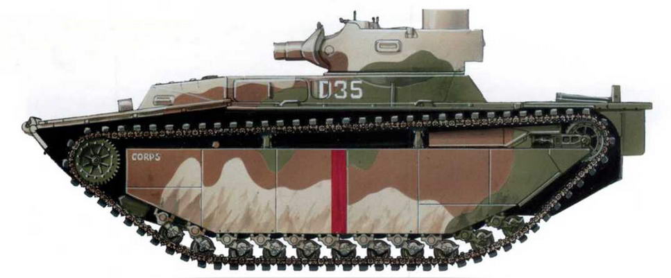 LVT(A)-2. Некоторое количество таких транспортеров, применявшихся при штурме Иводзимы в феврале 1945 года, несло трехцветный камуфляж