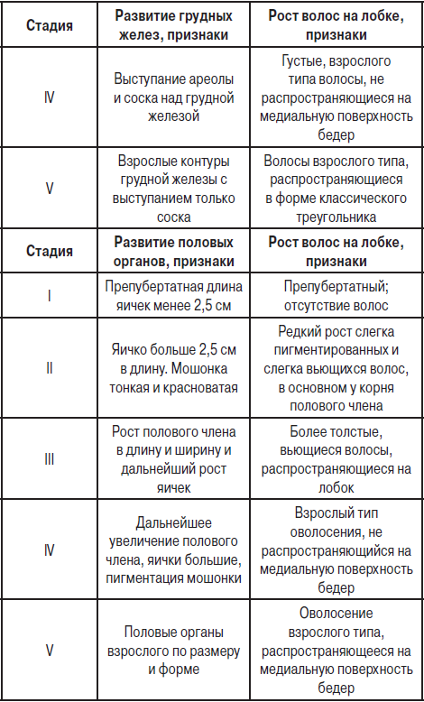 Стадии полового созревания мальчиков и девочек по Дж. Таннеру [27] (1969 г.)
