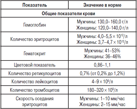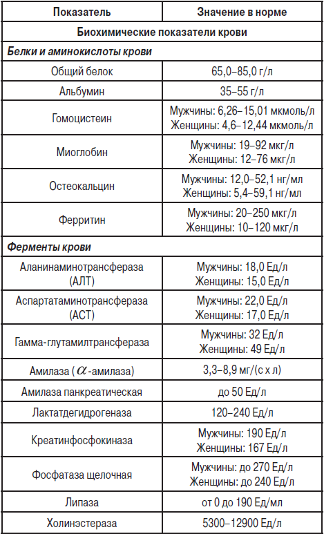 Сводная таблица лабораторных и биохимических констант человеческого организма (кровь)