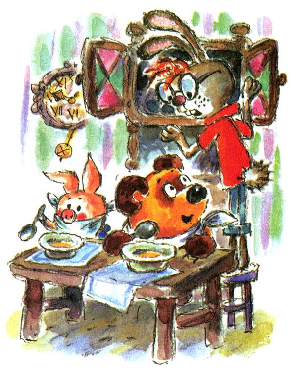 Приходят Винни-Пух с Пятачком к Кролику в гости.