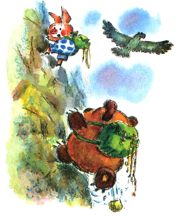 Стали Винни с Пятачком альпинистами. Ползут по скале.