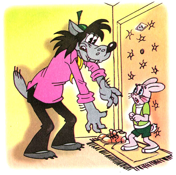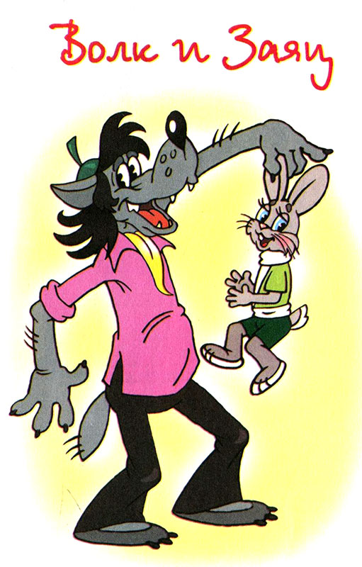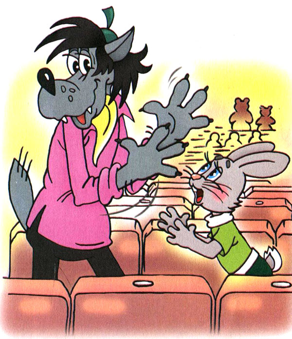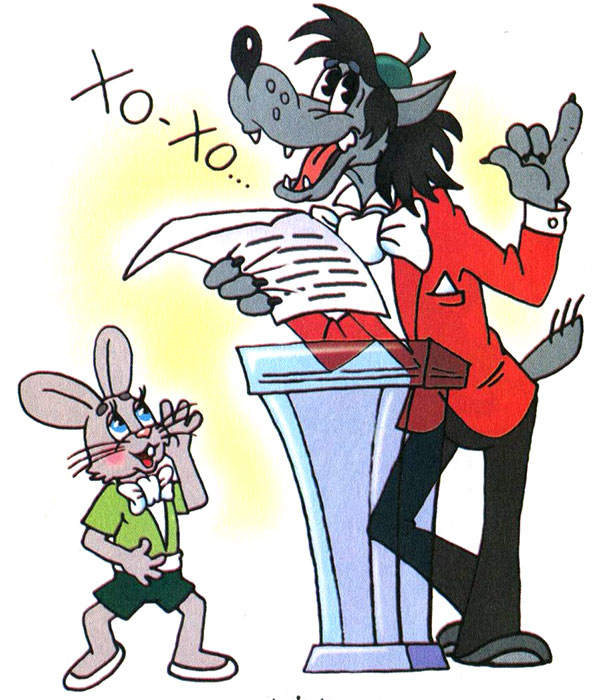 Очередной юбилей мультфильма «Ну, погоди!». Заяц написал речь, а Волк должен её прочитать. Волк выходит на трибуну и читает: