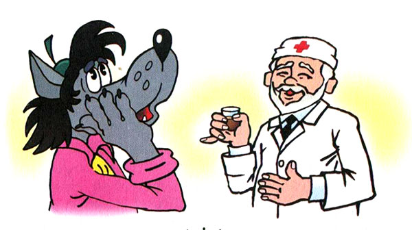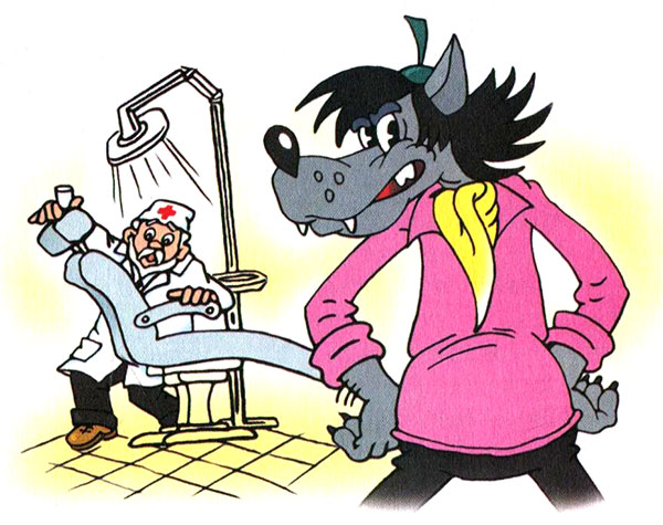 Волк трясётся от страха. Зубной врач предлагает ему рюмку коньяку. Волк выпивает, врач спрашивает: