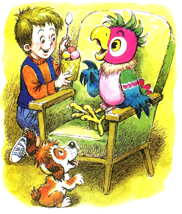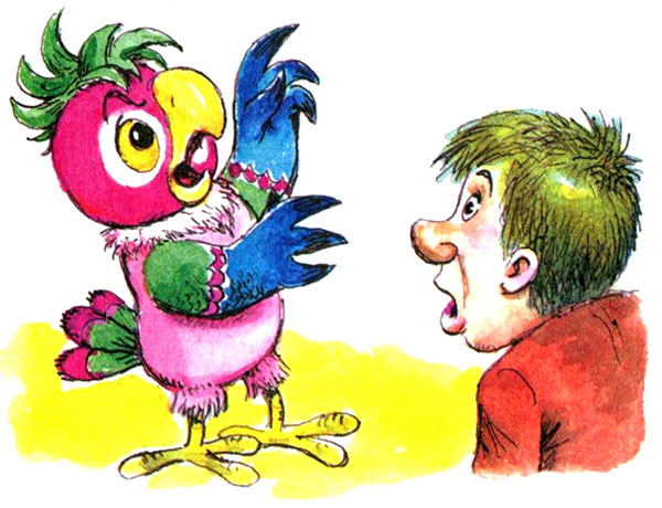 Улетел попугай Кеша от Вовки и решил полетать по белу свету, разных новых слов поднабраться.