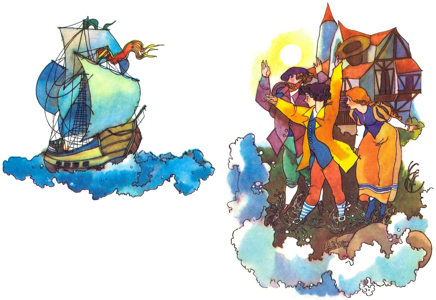 — Ну, держись! — сказали человечки и полетели далеко-далеко за широкое море.